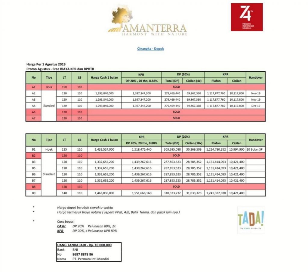 Type dan harga amanterra residence